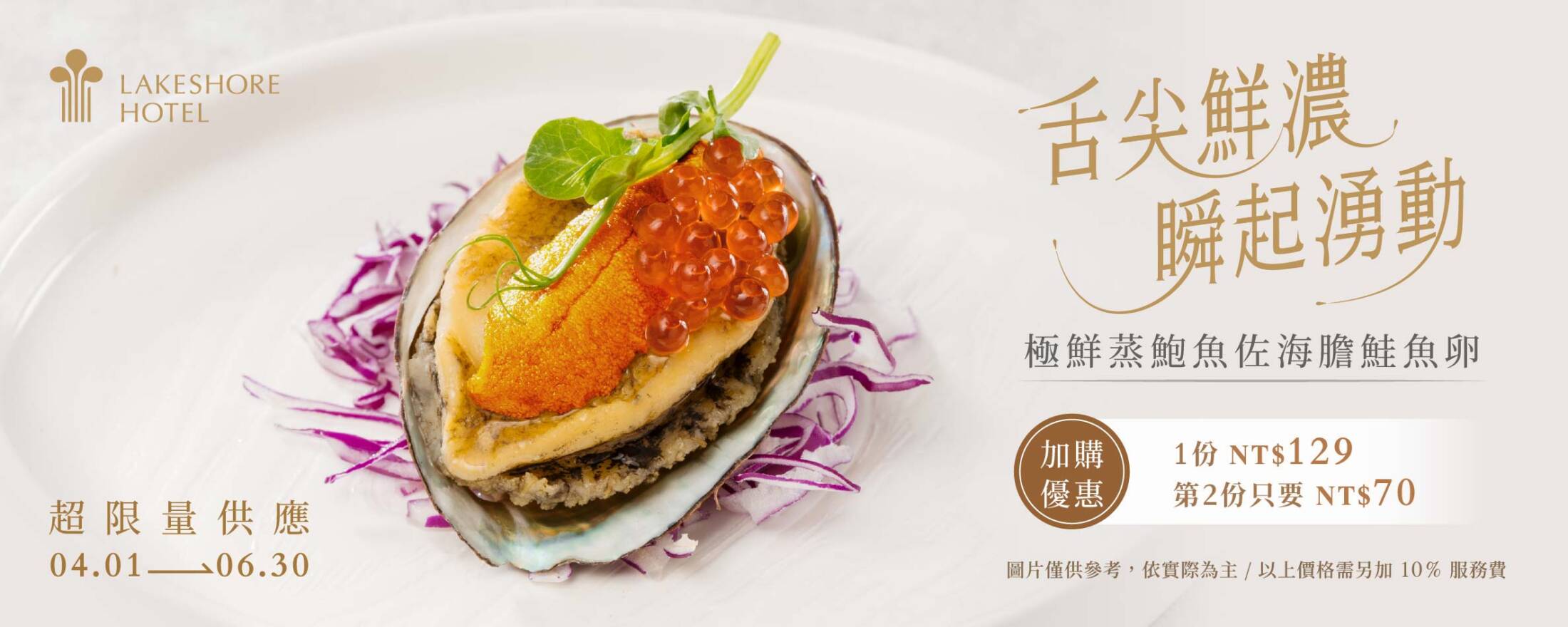 【4-6月限定】獻上高規品質的大洋珍饈!「極鮮蒸鮑魚佐海膽鮭魚卵」限時加購優惠1份$129,第2份只要$70,輕鬆升級奢華早午餐/晚餐,舌尖鮮濃,瞬起湧動!點我了解詳情↗