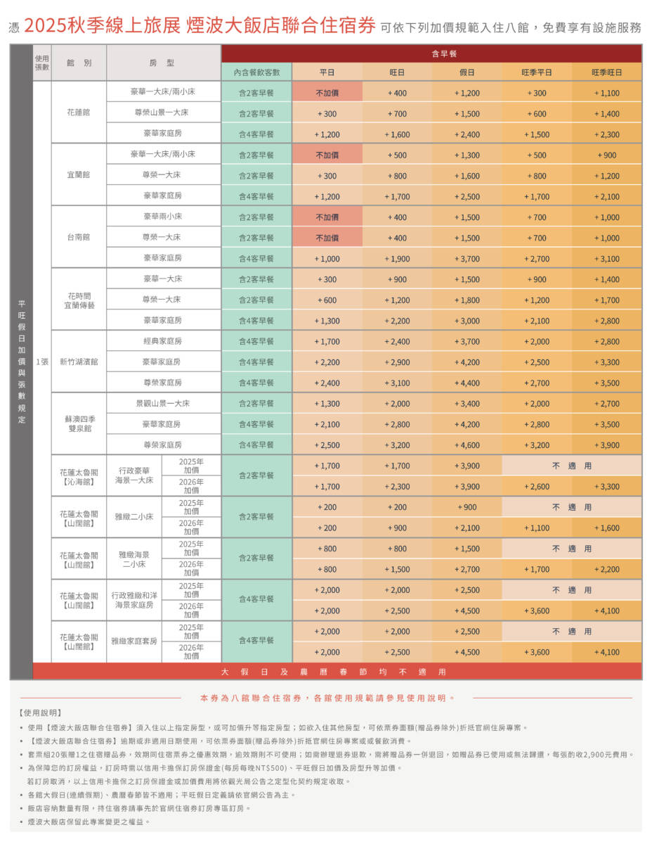 詳細適用館別與房型請見👉 2025秋季線上旅展商品加價表